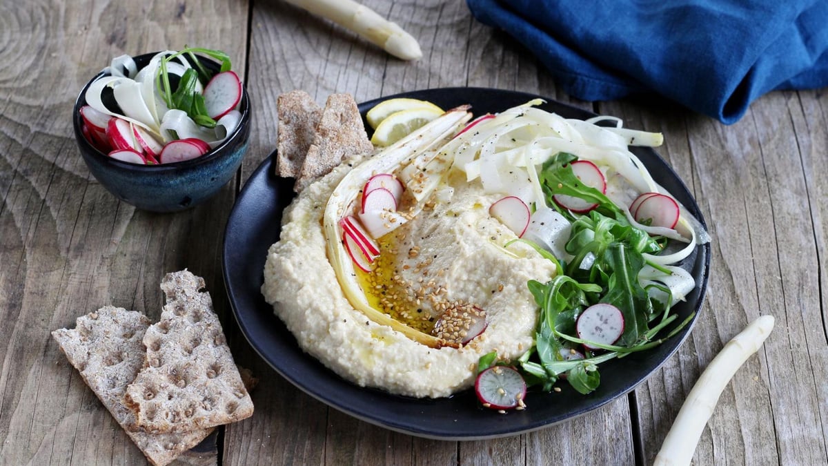 Transformez votre houmous classique avec cette version agrémentée d’asperges des Sables des Landes IGP, radis et roquette. Un délice à tartiner sur des toasts lors de vos apéritifs ! Ne ratez pas la recette du houmous aux asperges, radis et roquette.