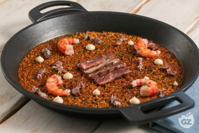 Avec la recette du Paella aux crevettes, calmar et socket ibérique Vous pouvez profiter d’un seul plat des saveurs espagnoles inspirées de la Paella traditionnelle de valence. Un délicieux mélange de viande et de poisson qui est né de l’inspiration du chef Lorenzo Sacchi du Monza Circolino. Cette version contemporaine du paella classique Il combine la délicatesse des crevettes, la cohérence du calamareth et l’intensité aromatique de la prise ibérique, une précieuse coupe du cochon, précédemment mariné et grillé.