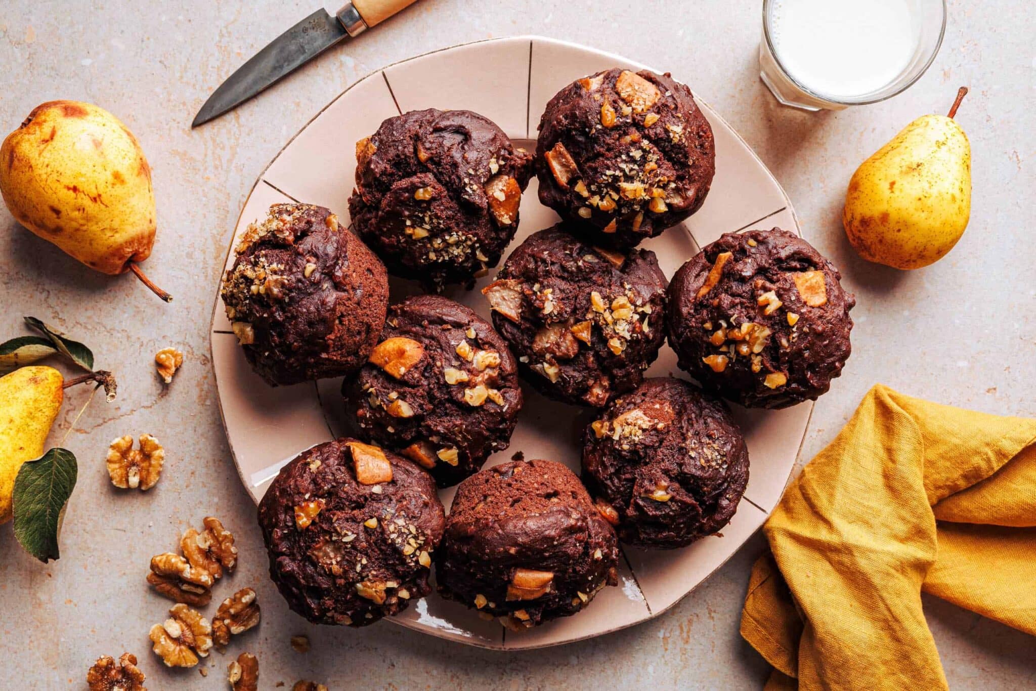 Muffins au chocolat végétalien avec noix et poire